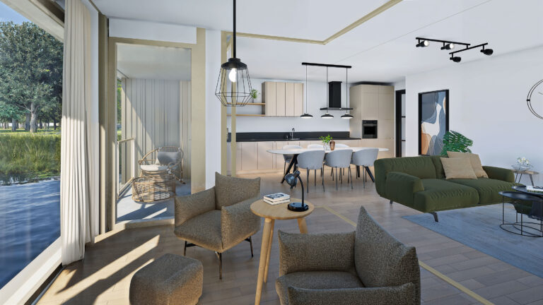 De ruime woonkamer loopt naadloos over in de seizoenserre op het zuidwesten, waar je het hele jaar door kunt genieten van extra leefruimte. De luxe keuken en complete badkamer zijn al inbegrepen, net als vloerverwarming en -koeling. Zo woon je comfortabel en duurzaam, zonder dat er meerwerk nodig is.