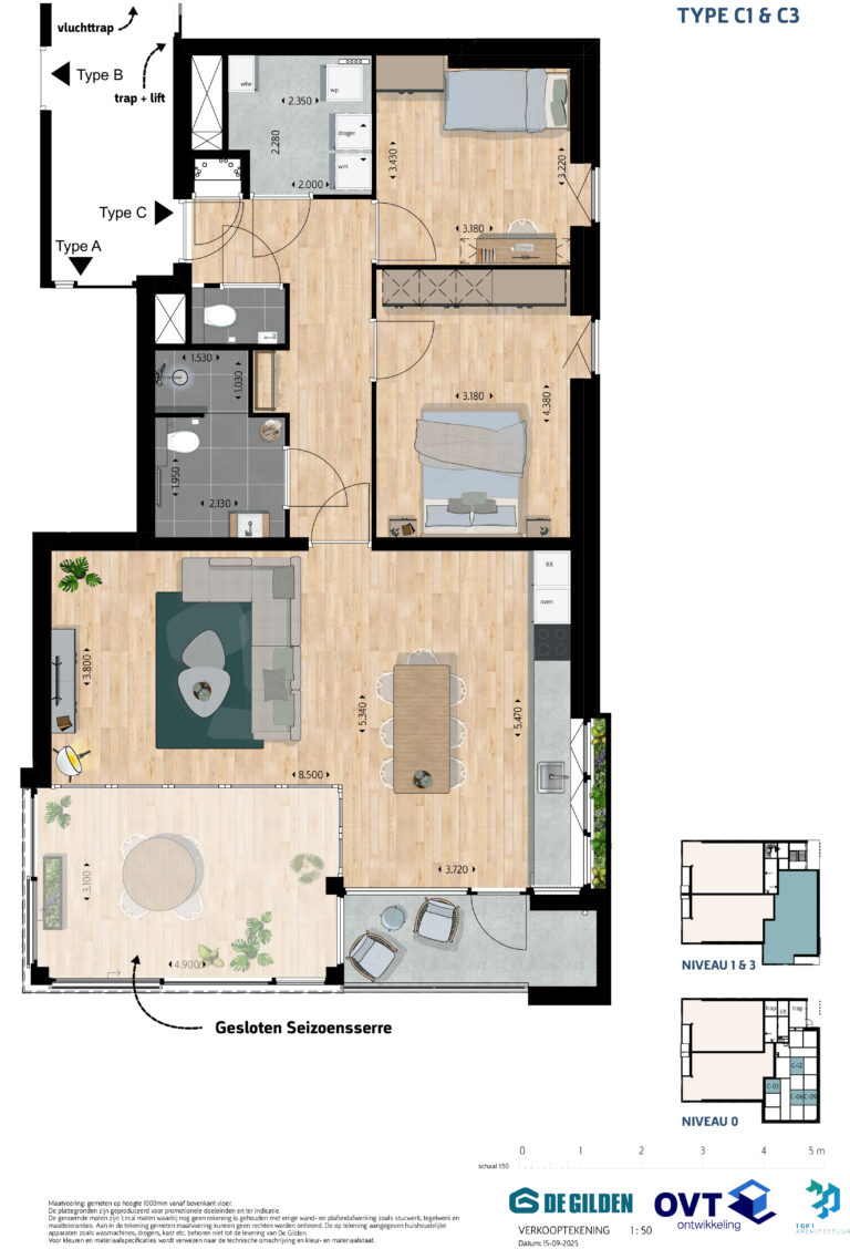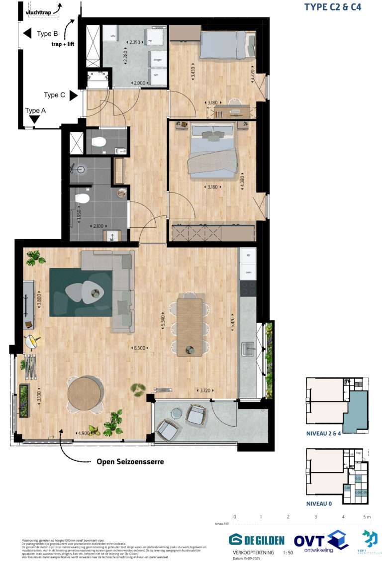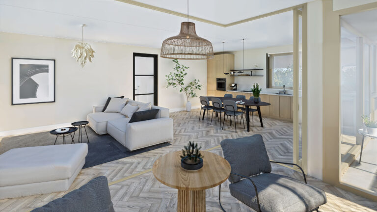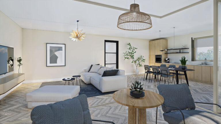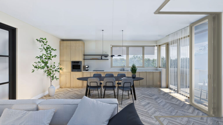 De ruime woonkamer loopt naadloos over in het balkon op het zuiden, waar je het hele jaar door kunt genieten van extra leefruimte en fijne zonligging. De luxe keuken en complete badkamer zijn al inbegrepen, net als vloerverwarming en -koeling. Zo woon je comfortabel en duurzaam, zonder dat er meerwerk nodig is.